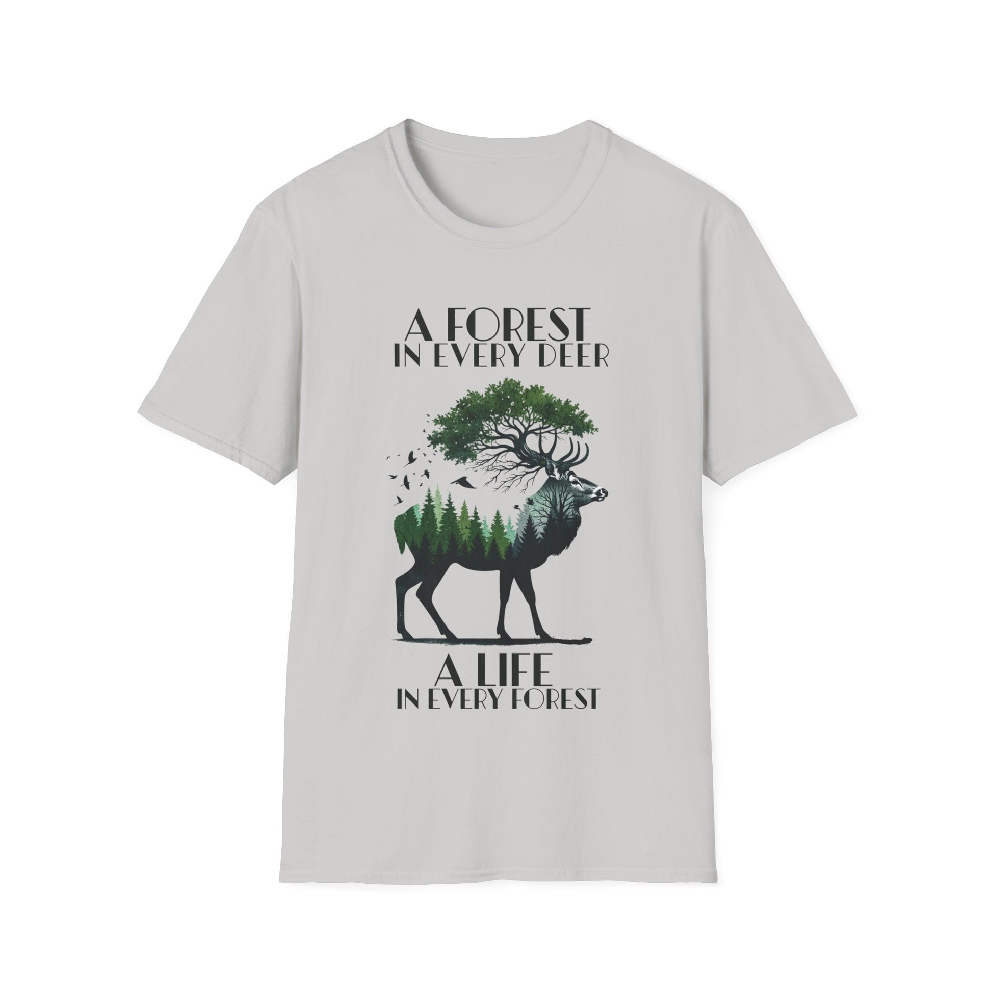 A Forest In Every Deer, A Life In Every Forest - Forest And Deer Double Exposure Style T-Shirt
