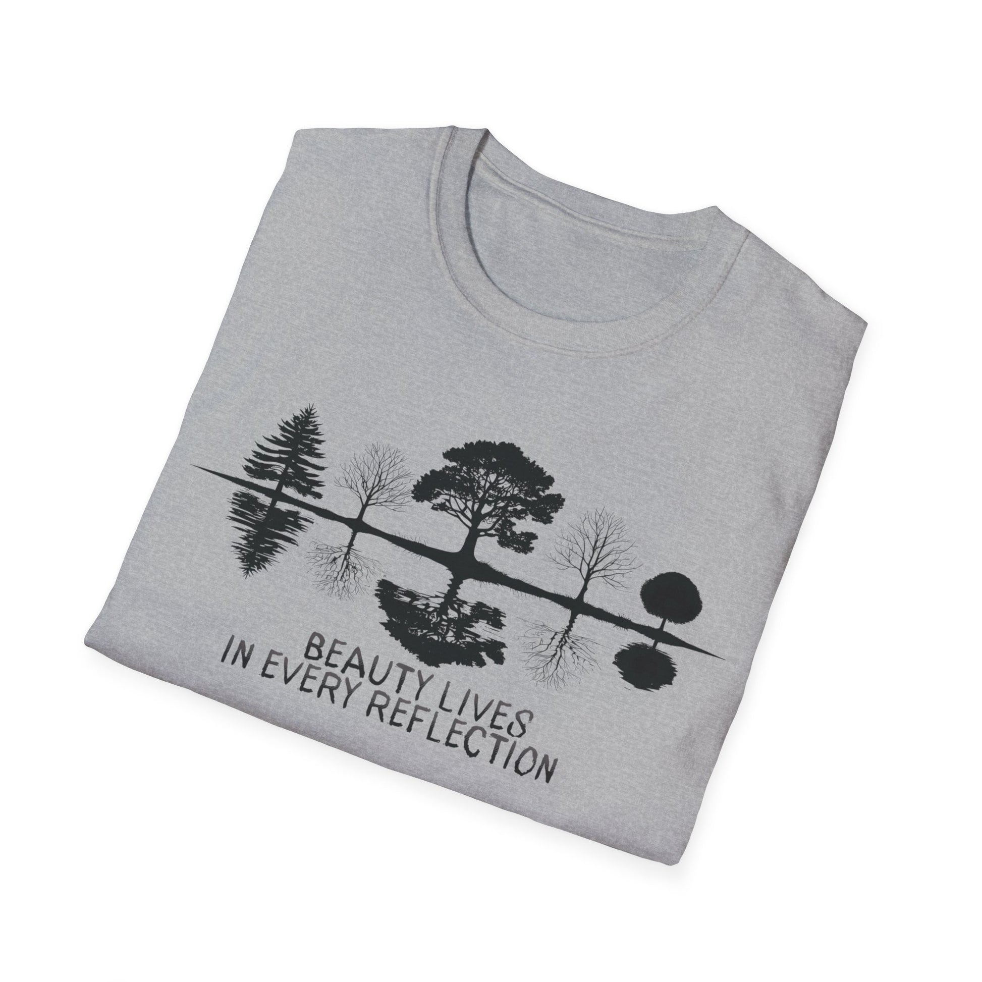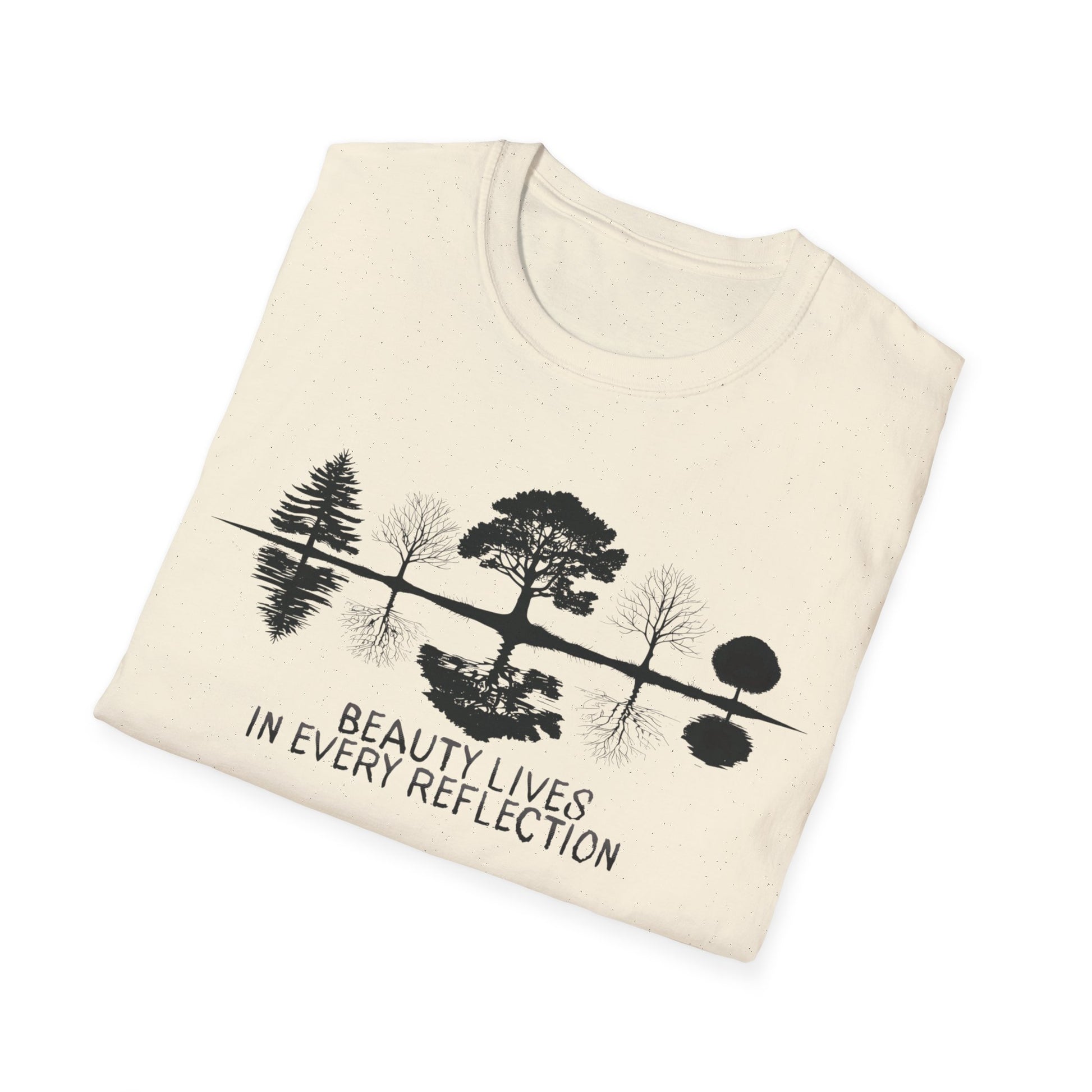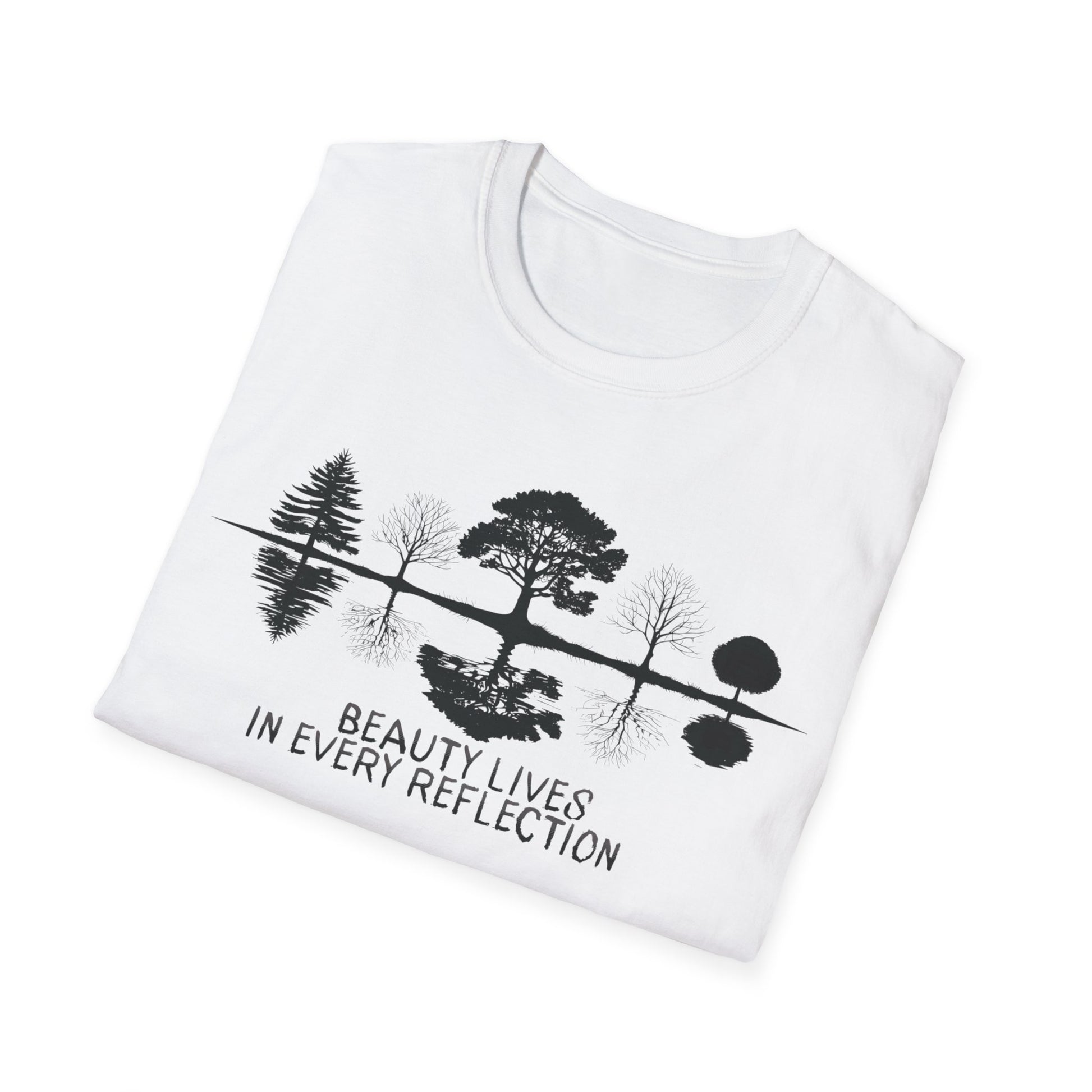 Beauty Lives In Every Reflection - Monochrome Silhouette Trees With Reflection In Water T-Shirt