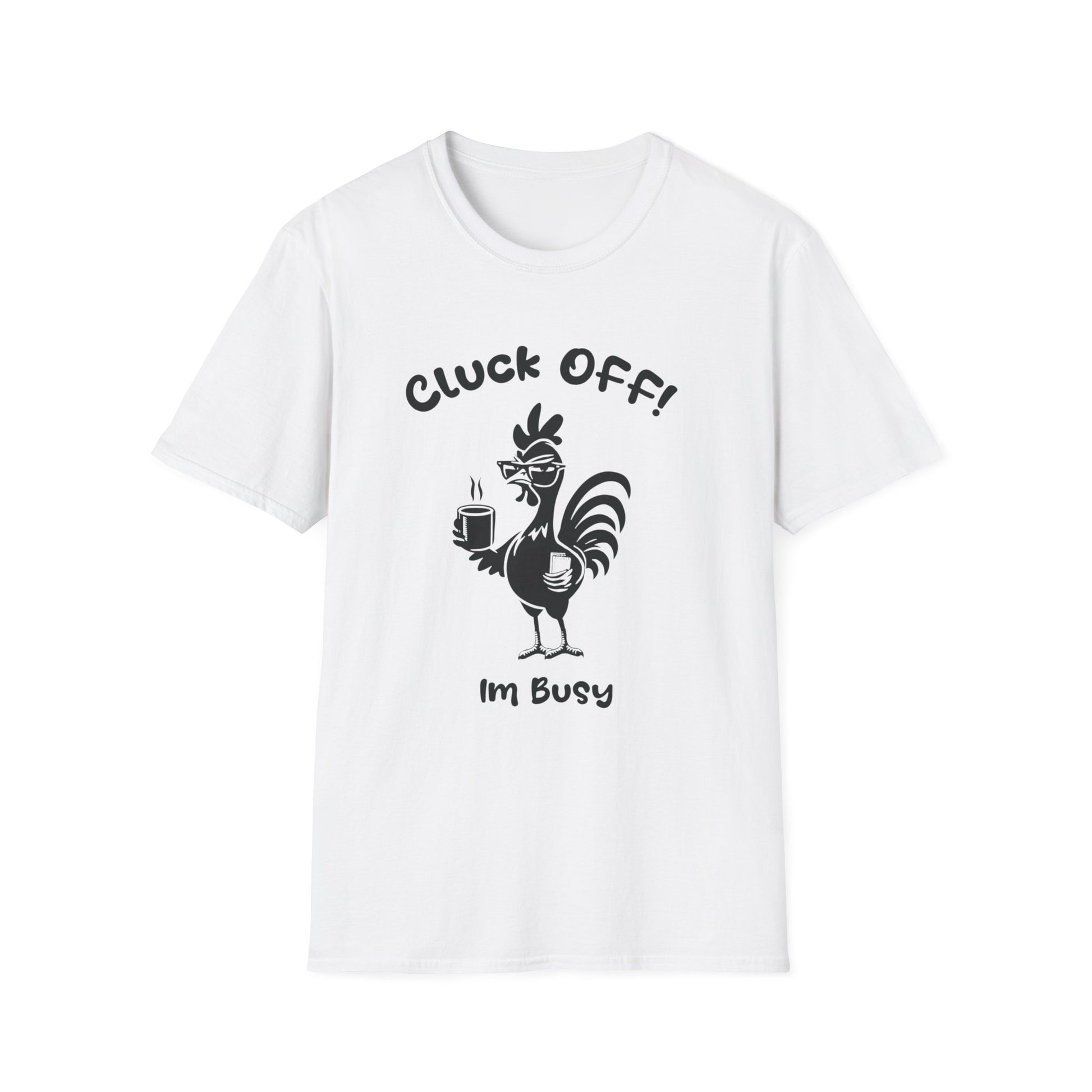 Cluck off I'm Busy - Playful Minimalistic Rooster Silhouette With Coffee And Files T-Shirt