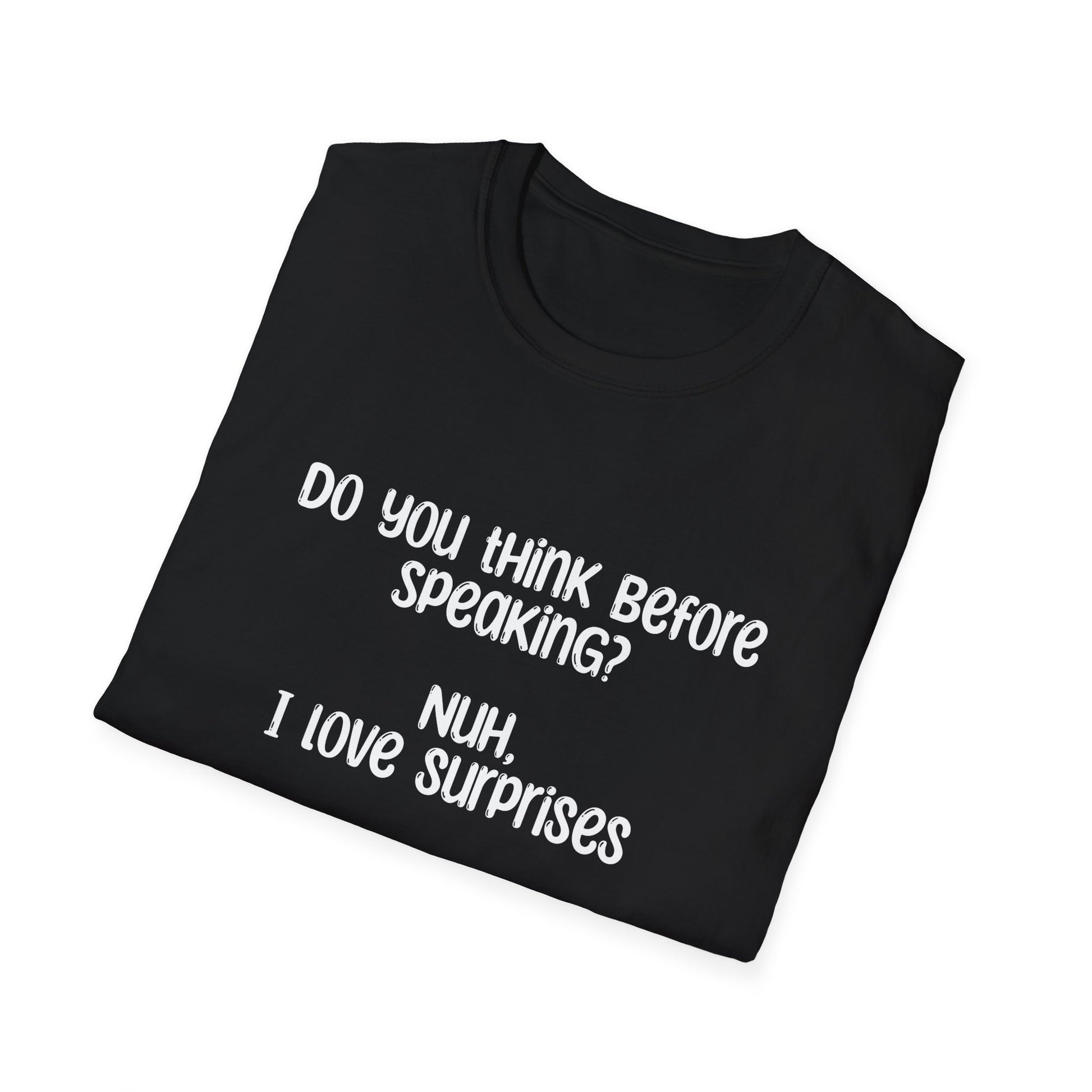 Do You Think Before Speaking? Nuh, I Love Surprises- Typography Playful T-Shirt