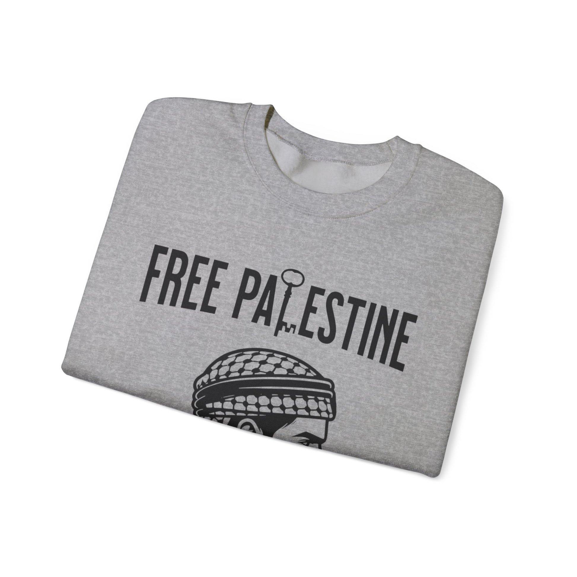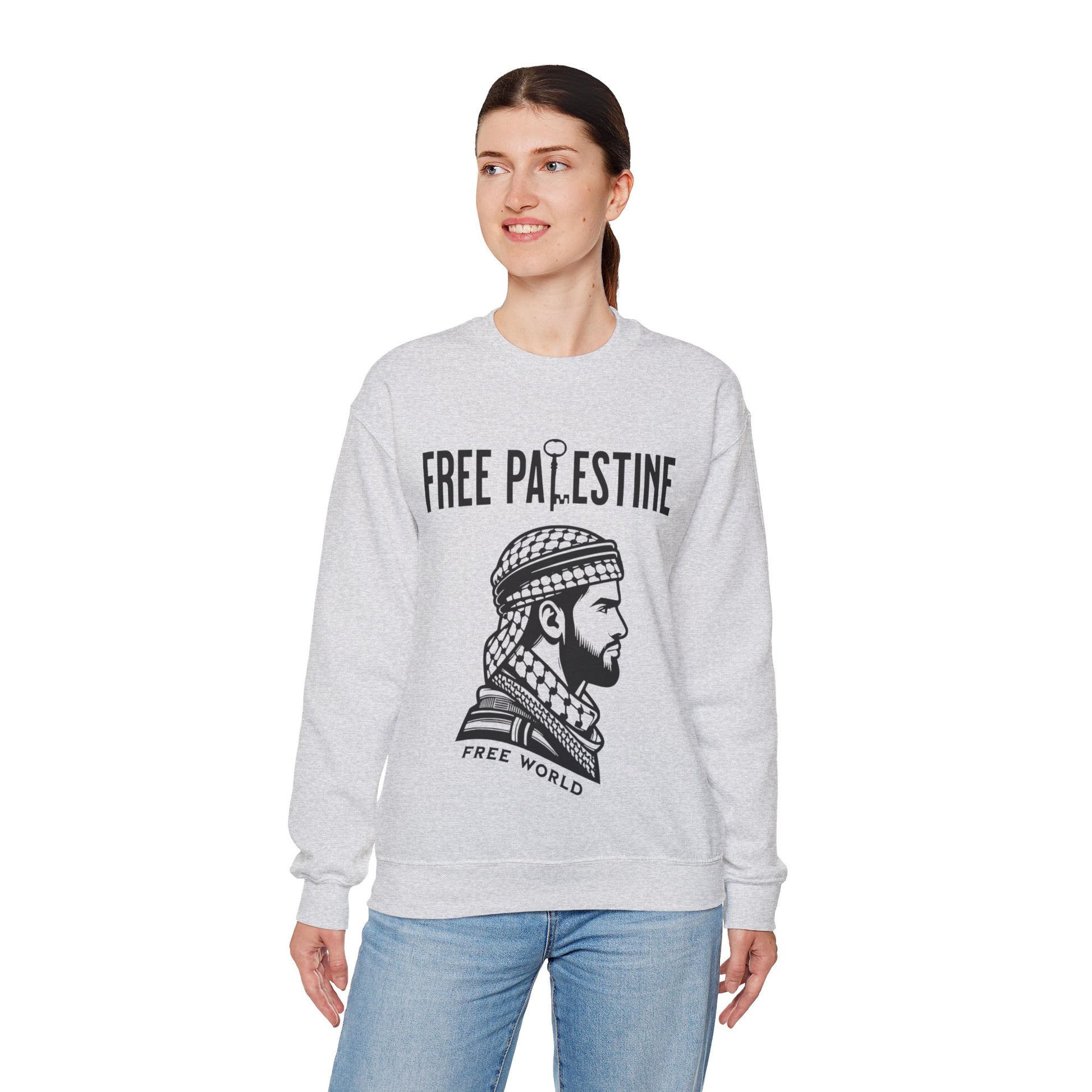 Free Palestine Free World - Man Wearing Palestinian Kuffiyah Sweatshirt