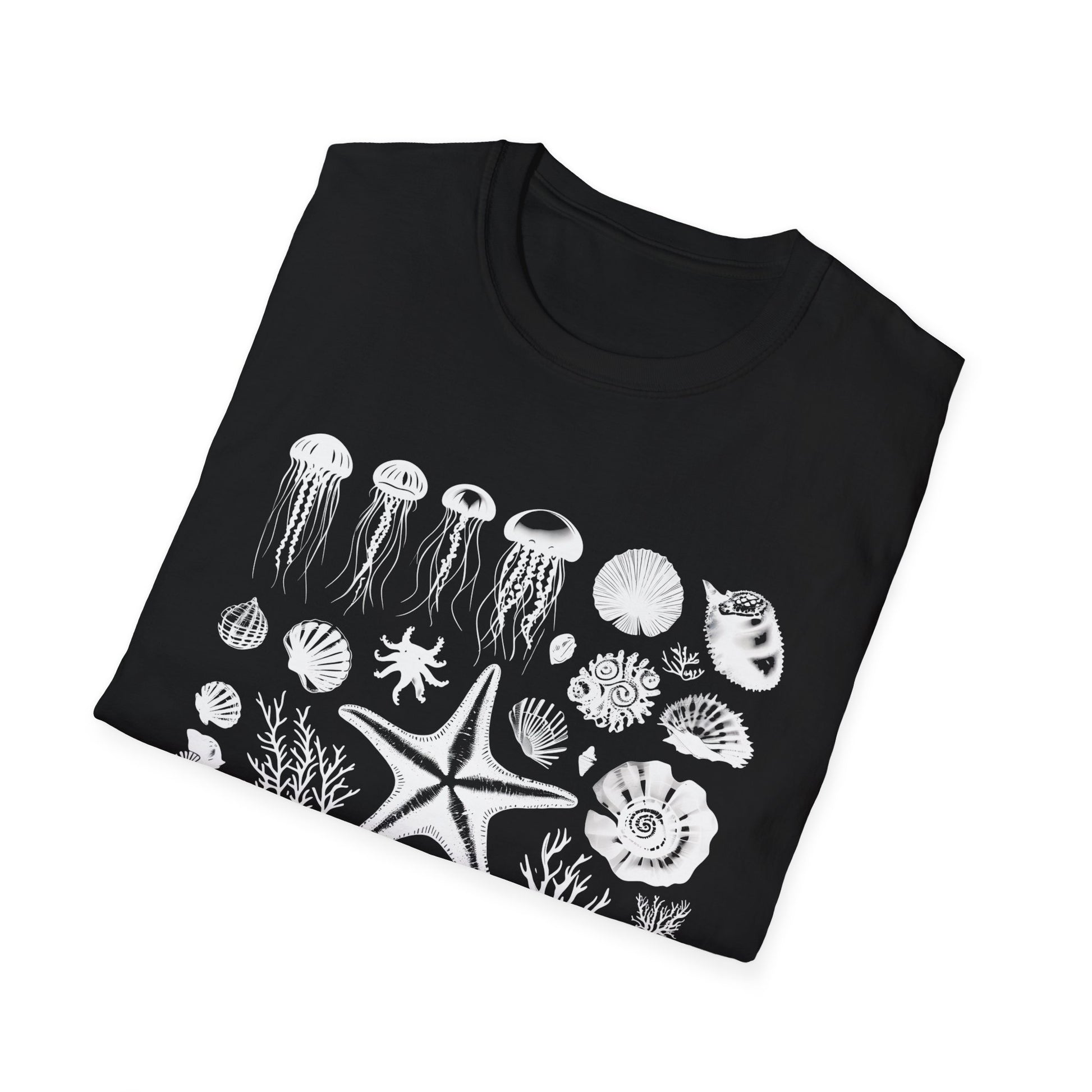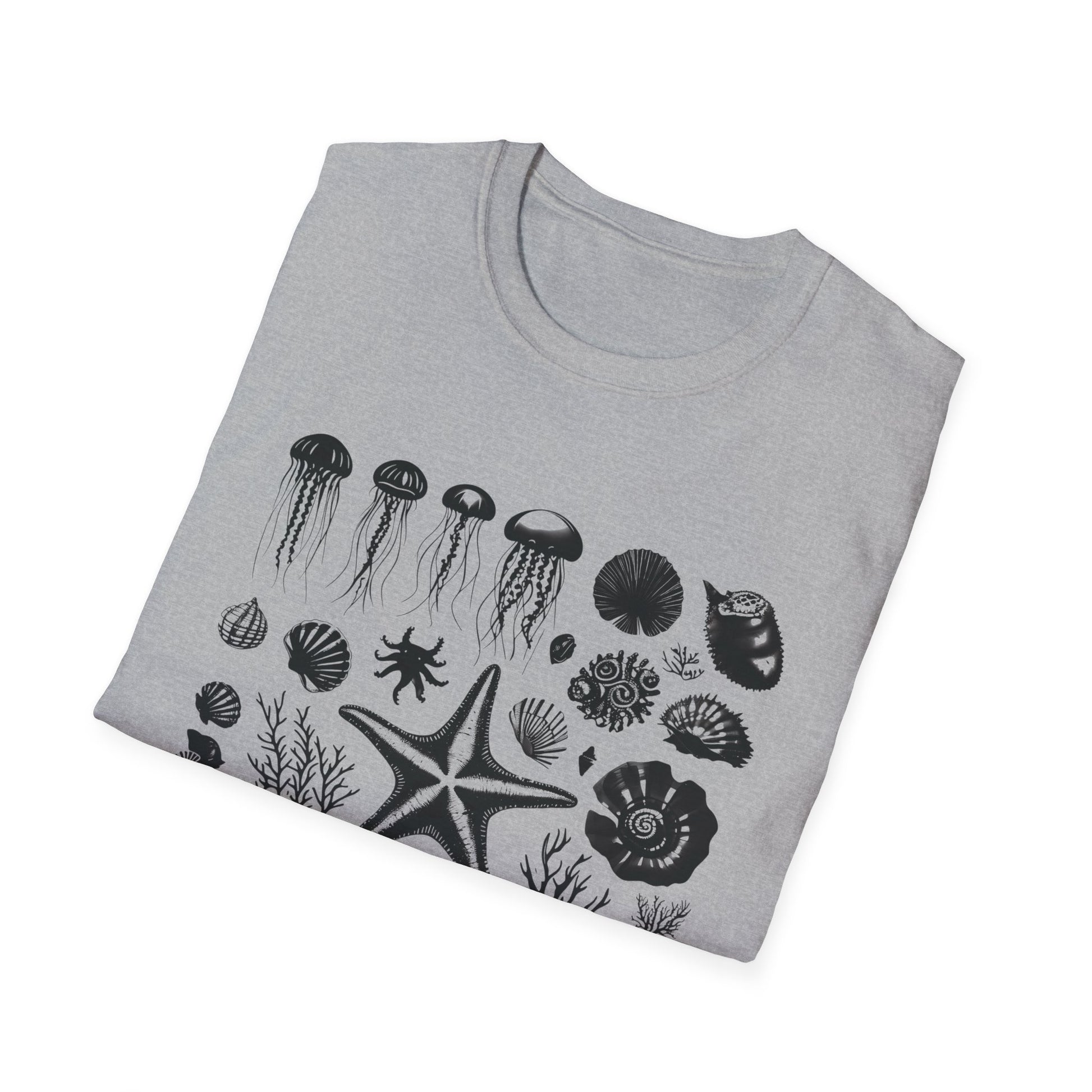 Monochrome Silhouette Grid Marine Creatures T-Shirt