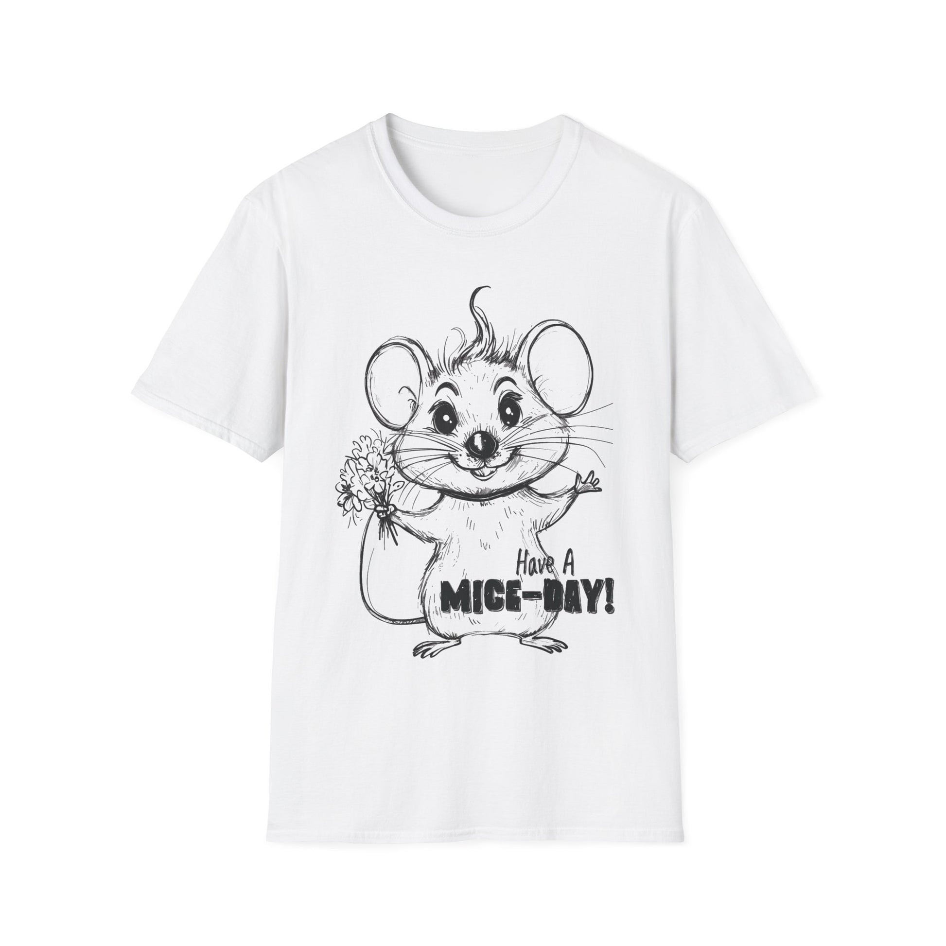 Have A Mice-Day T-Shirt - Mouse Holding Flowers Design
