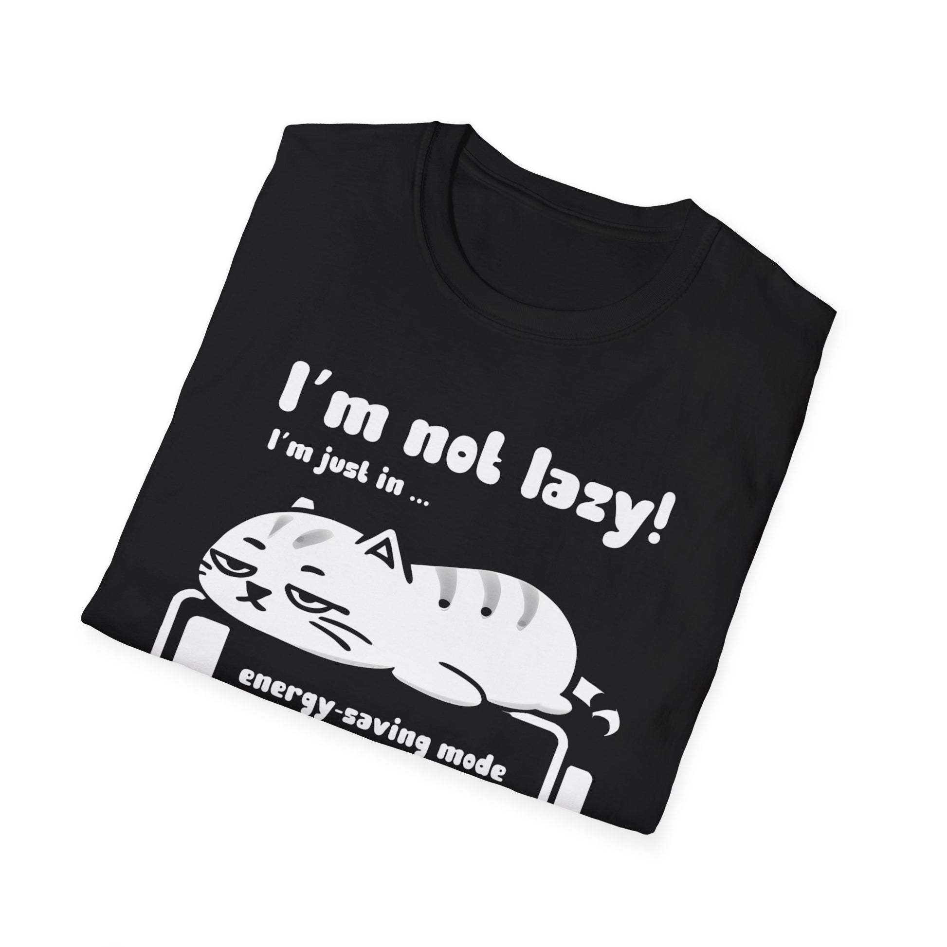 I'm not lazy, I'm Just In Energy Saving Mode - Playful Silhouette Cat On Battery T-Shirt
