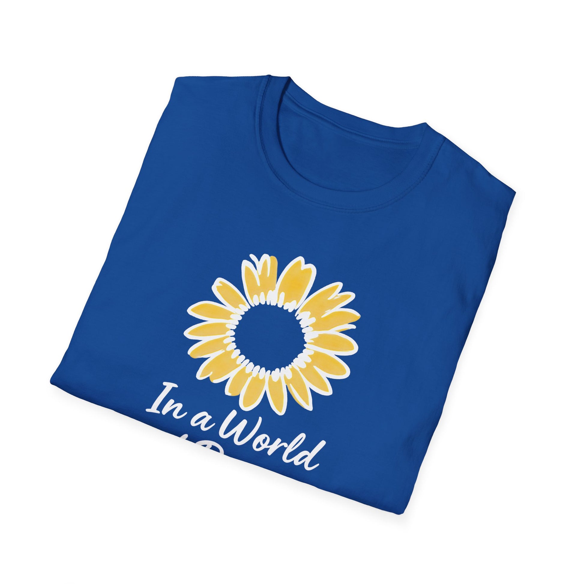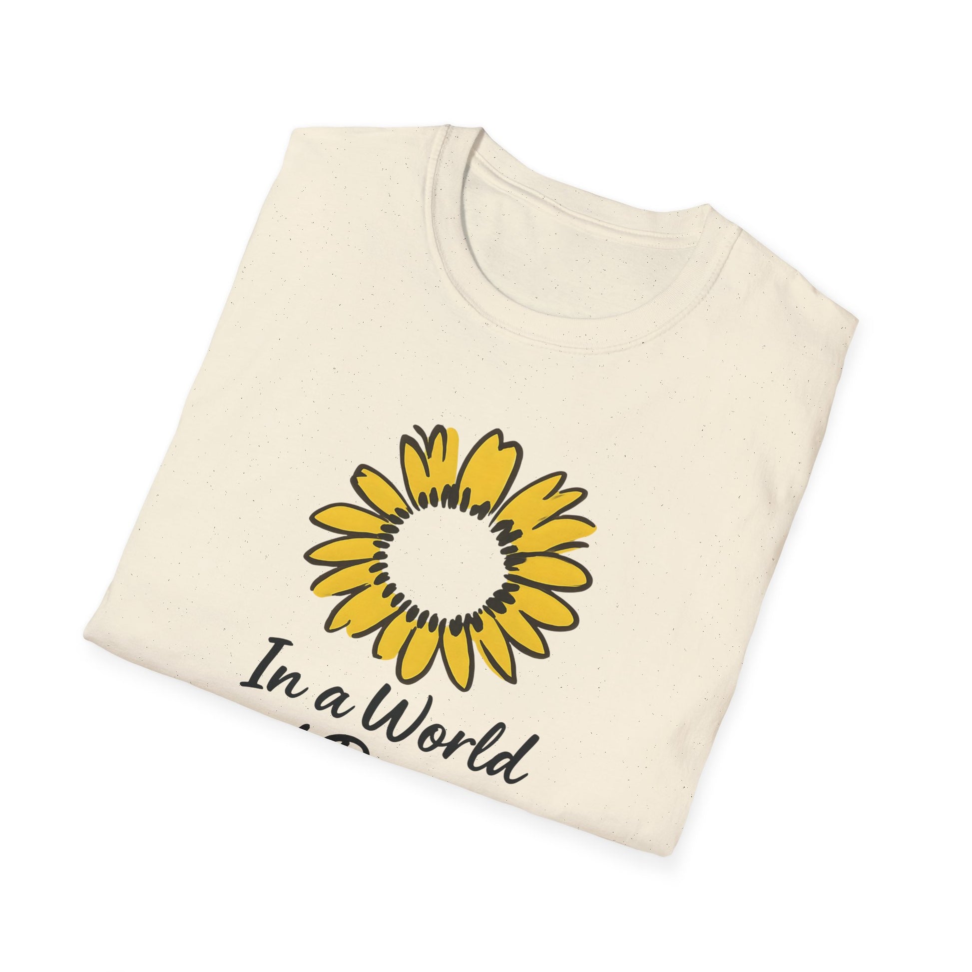 In a World of Roses Be a Sunflower T-Shirt - Cheerful Sunflower - Botanical Line Art Design