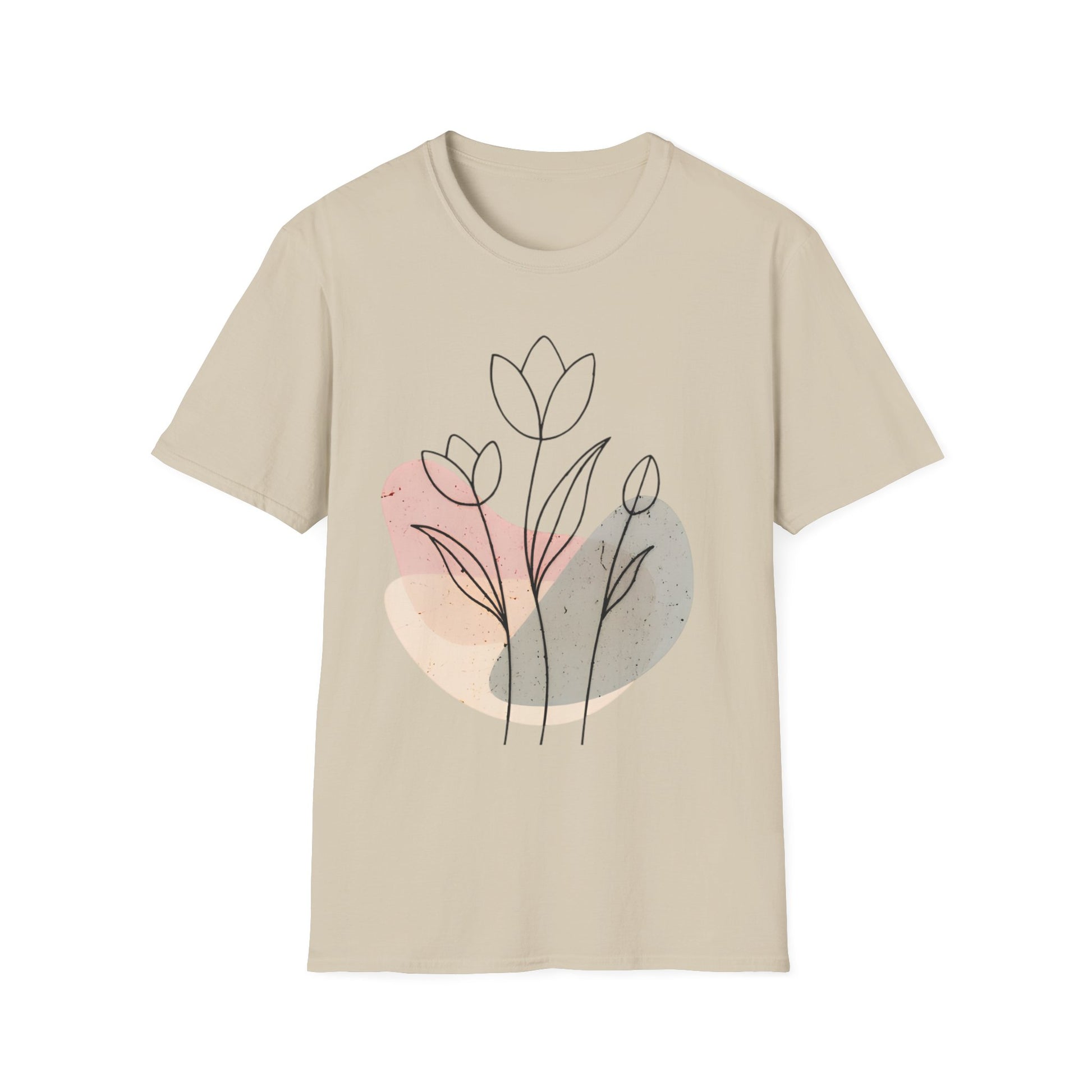 Tulip Outline T-shirt - Minimalistic Line Art Colored Background Floral Design