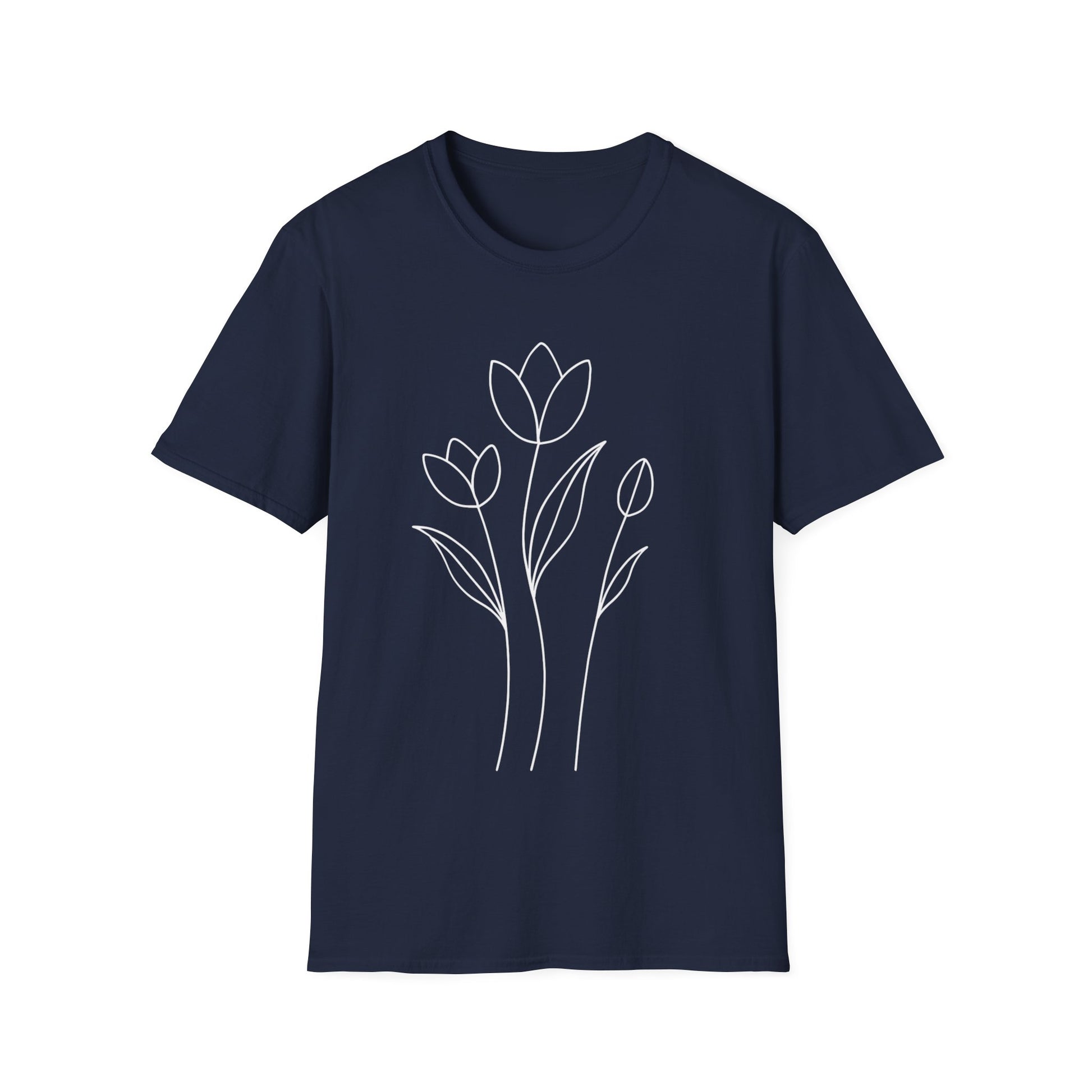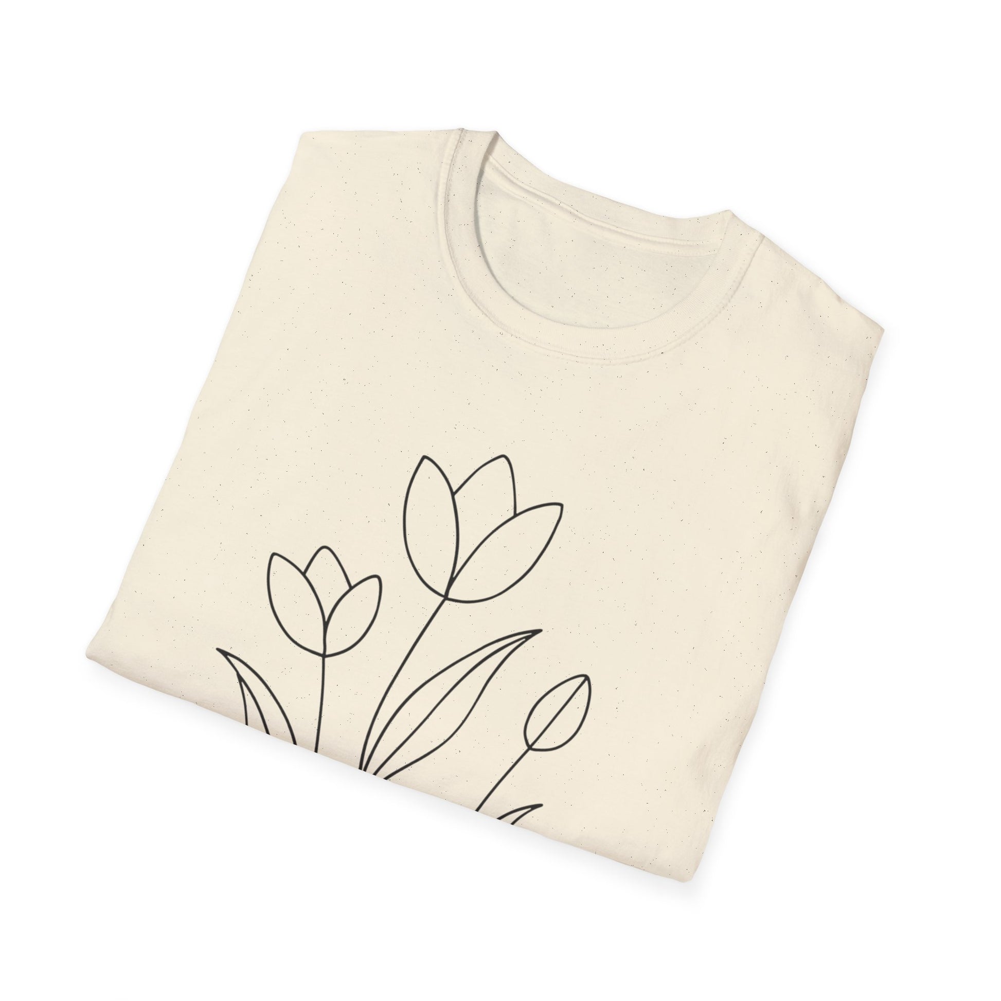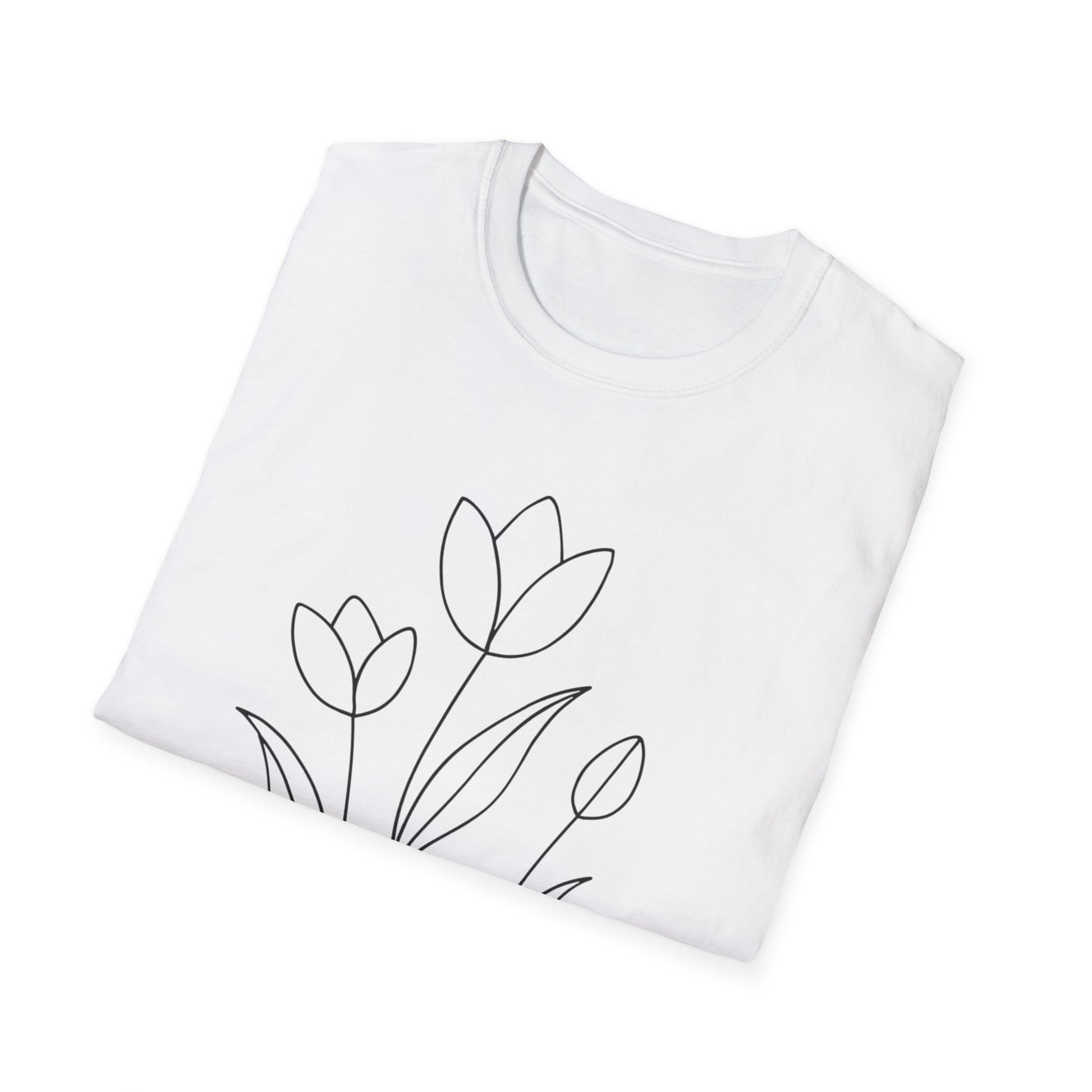 Tulip Outline T-Shirt - Line Art, Minimalistic Floral Design
