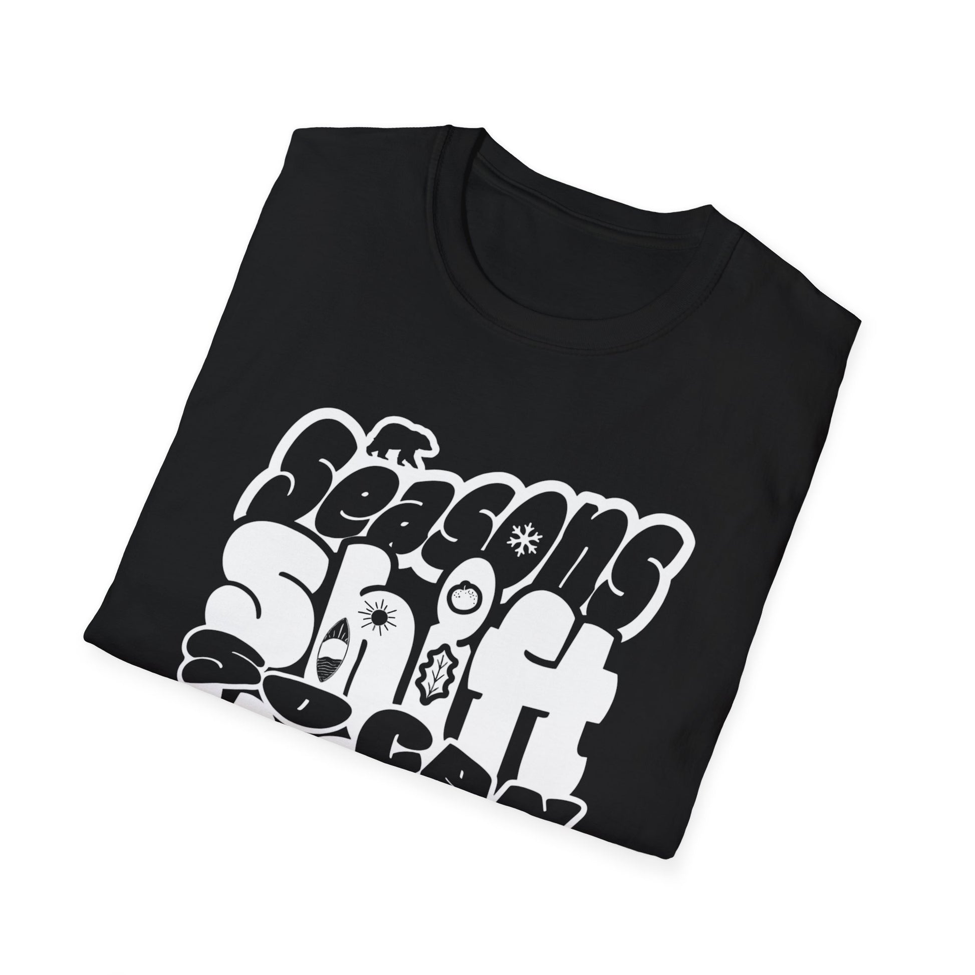 Seasons Shift So Can You T-Shirt - Monochrome Bubbly Typography Design