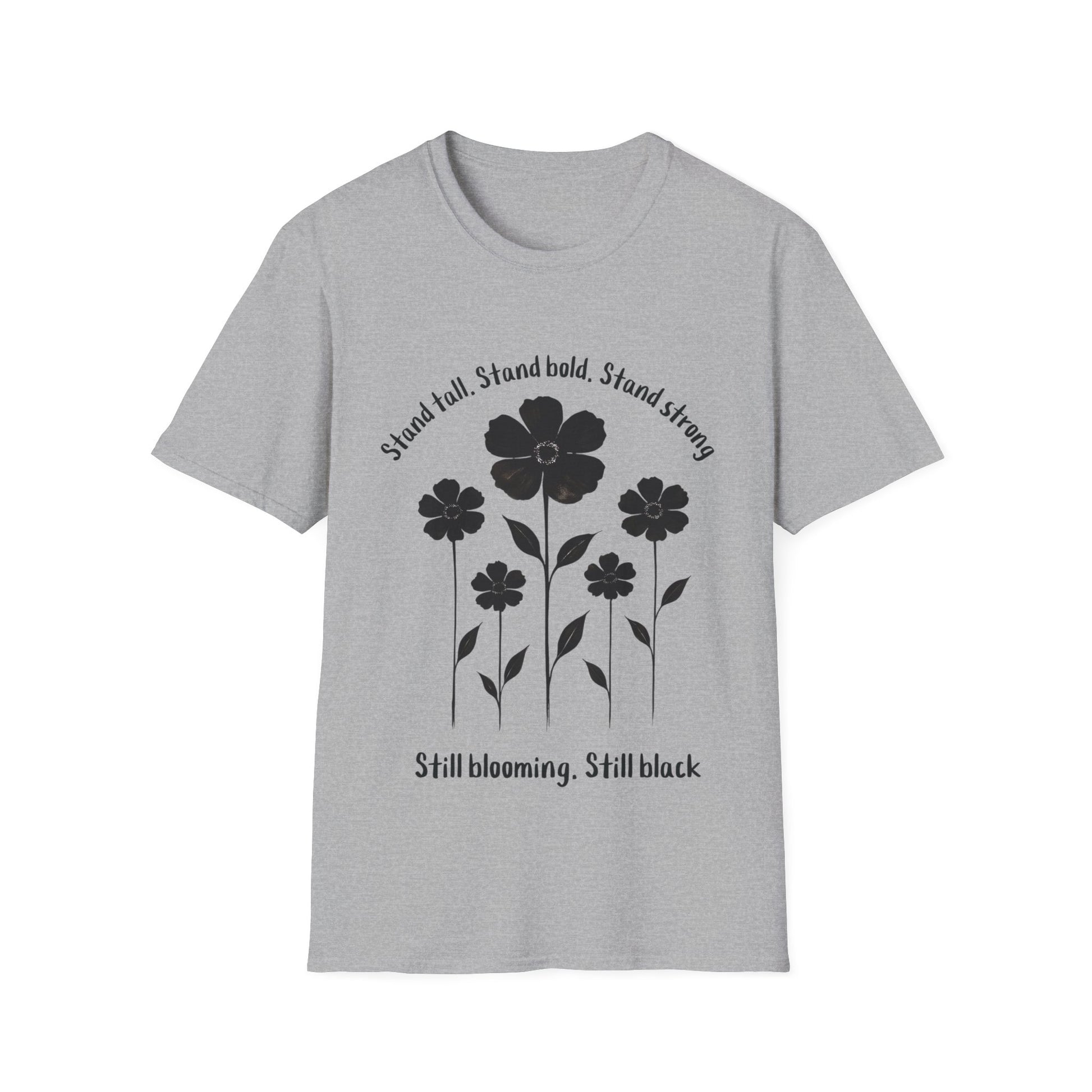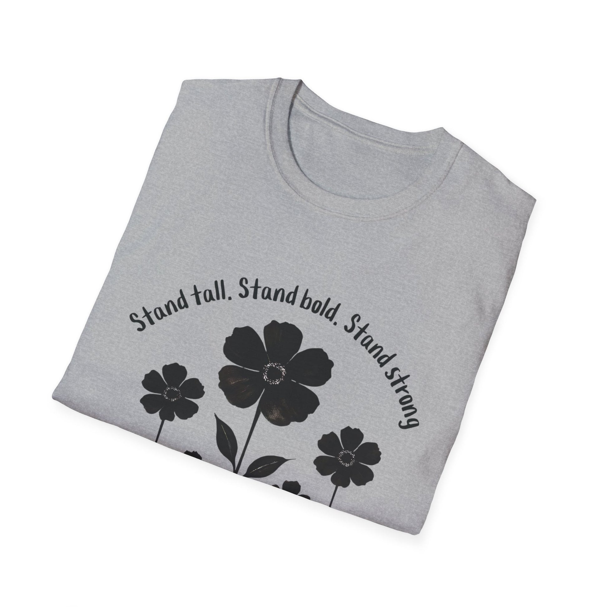 Stand Tall Stand Bold Stand Strong T-Shirt - Black Ink Silhouette Floral Design