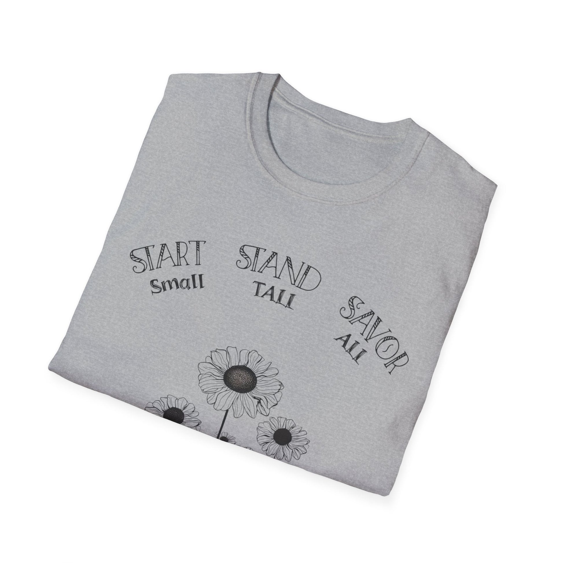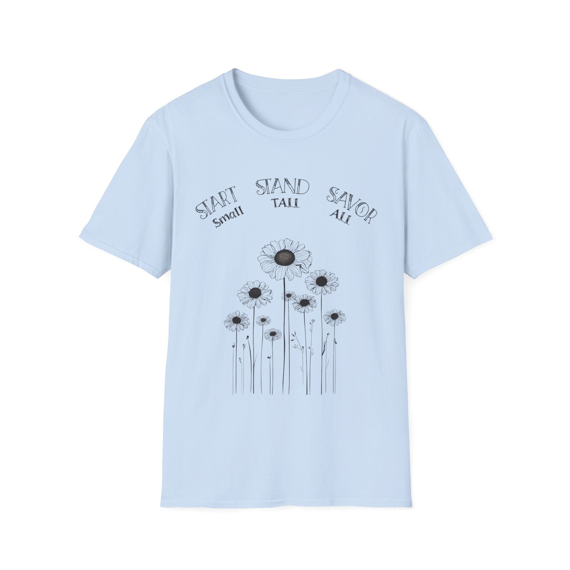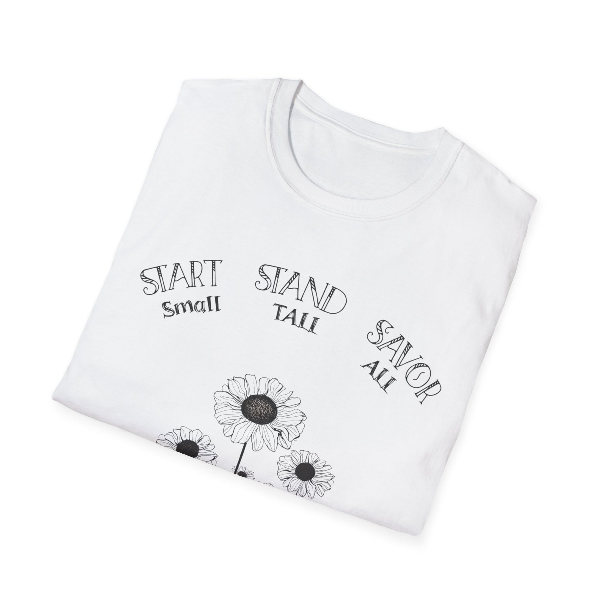 Start Small Stand Tall Savor All T-Shirt โ Minimalistic Daisy Flower Line Art Design