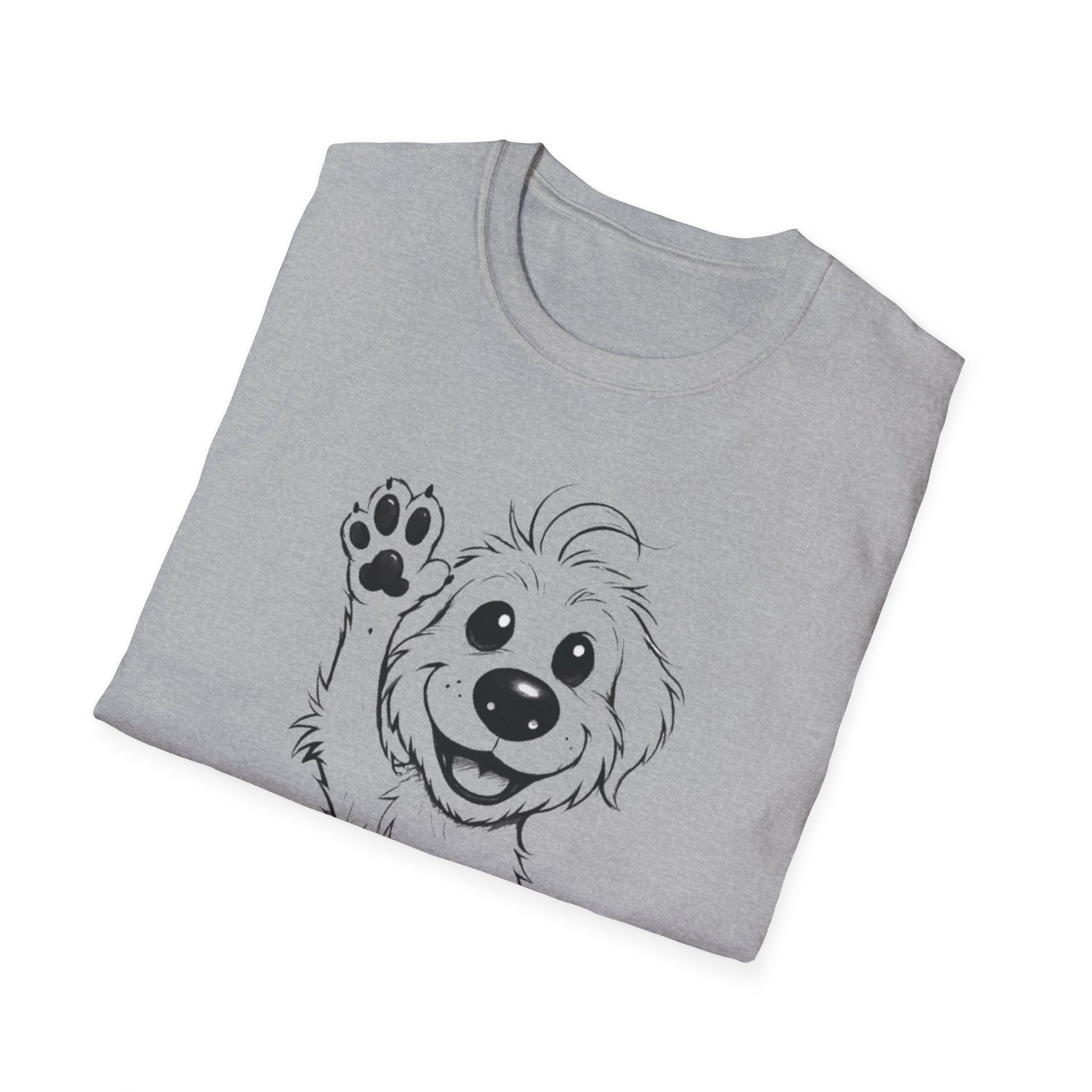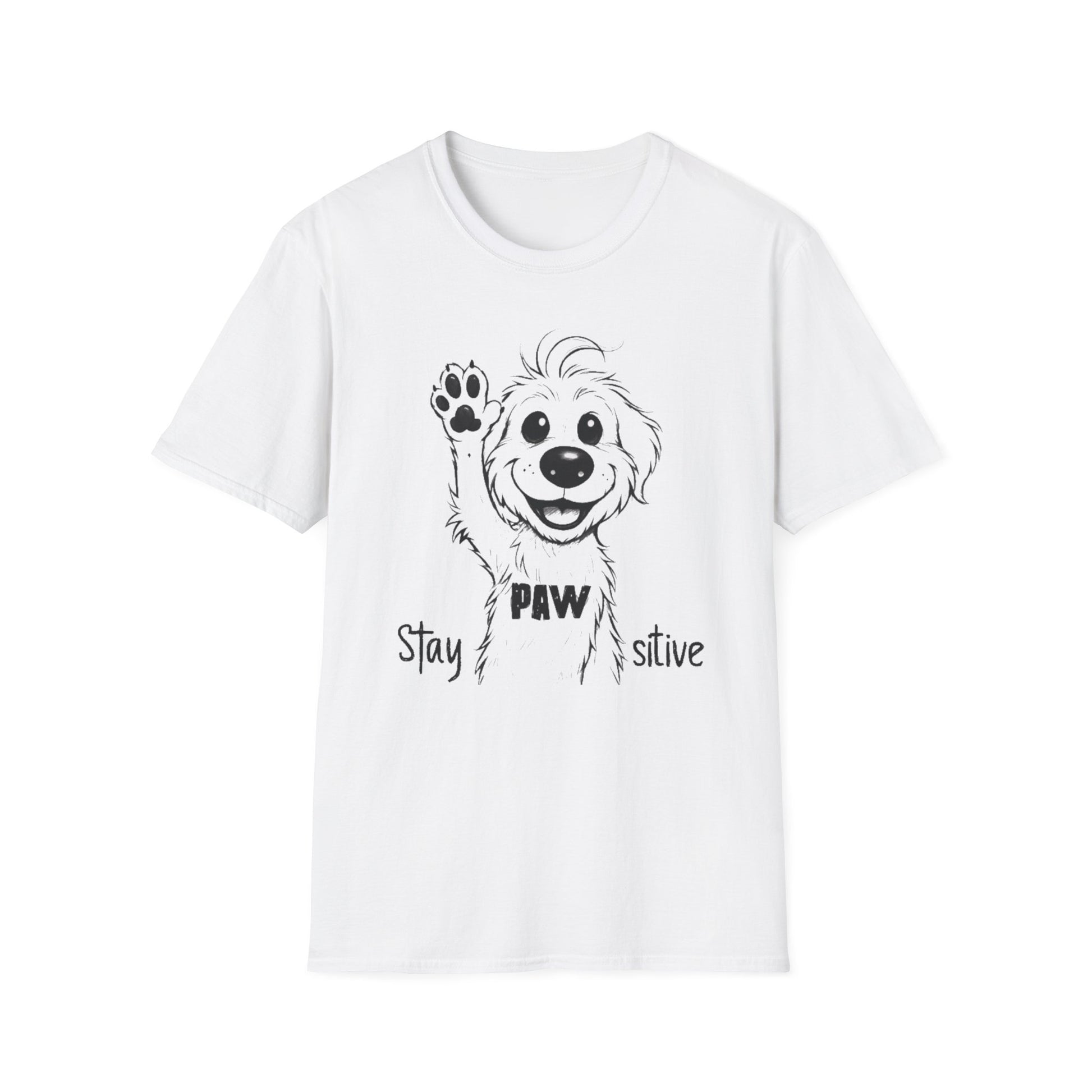 Stay Positive T-Shirt - Cartoon Playful Dog with Paw Raised High Design