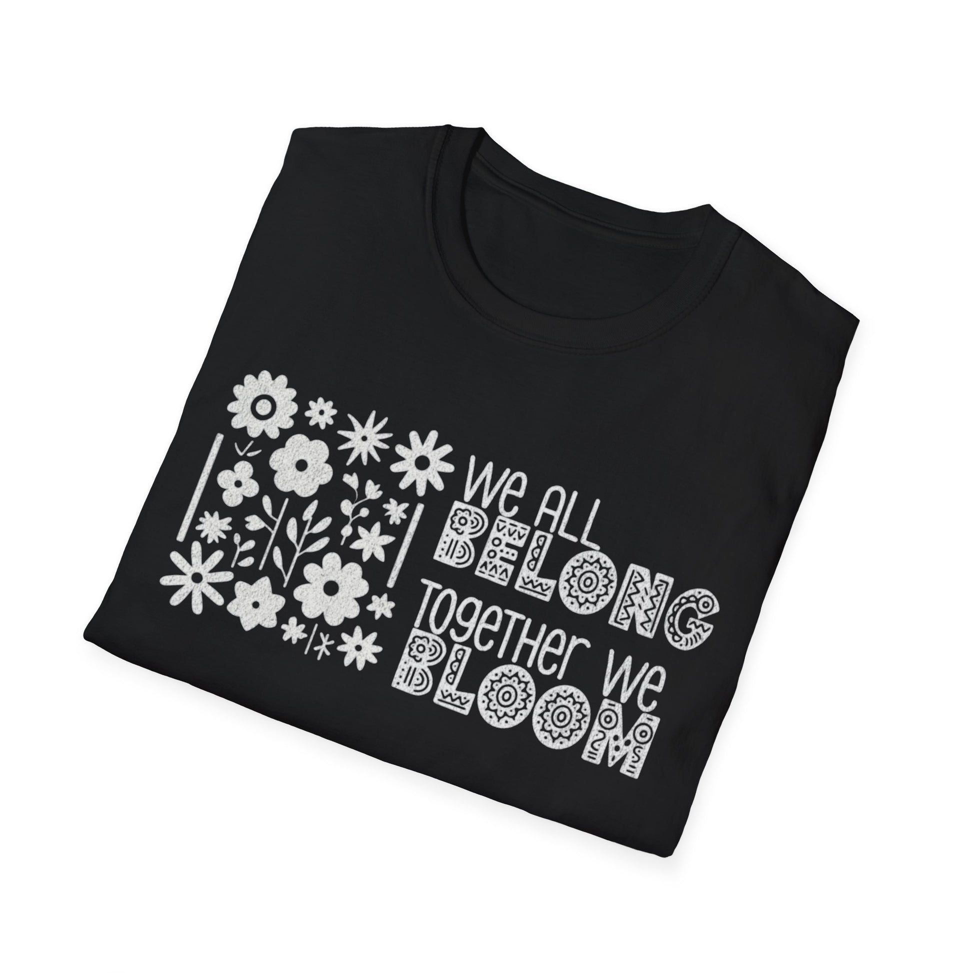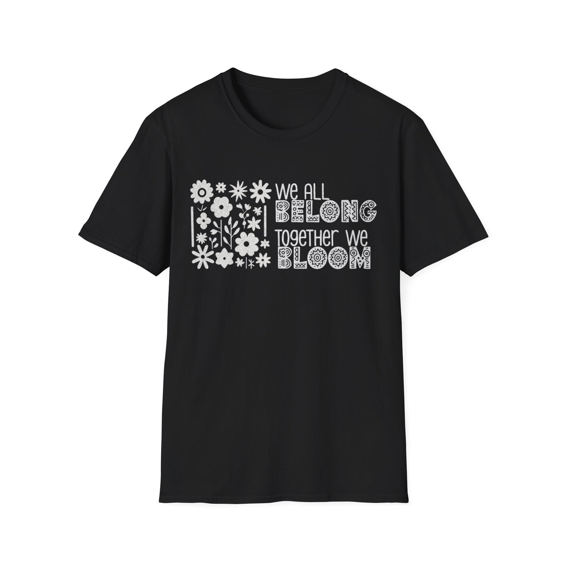 We all belong, together we bloom - White Silhouette Flowers T-Shirt Design