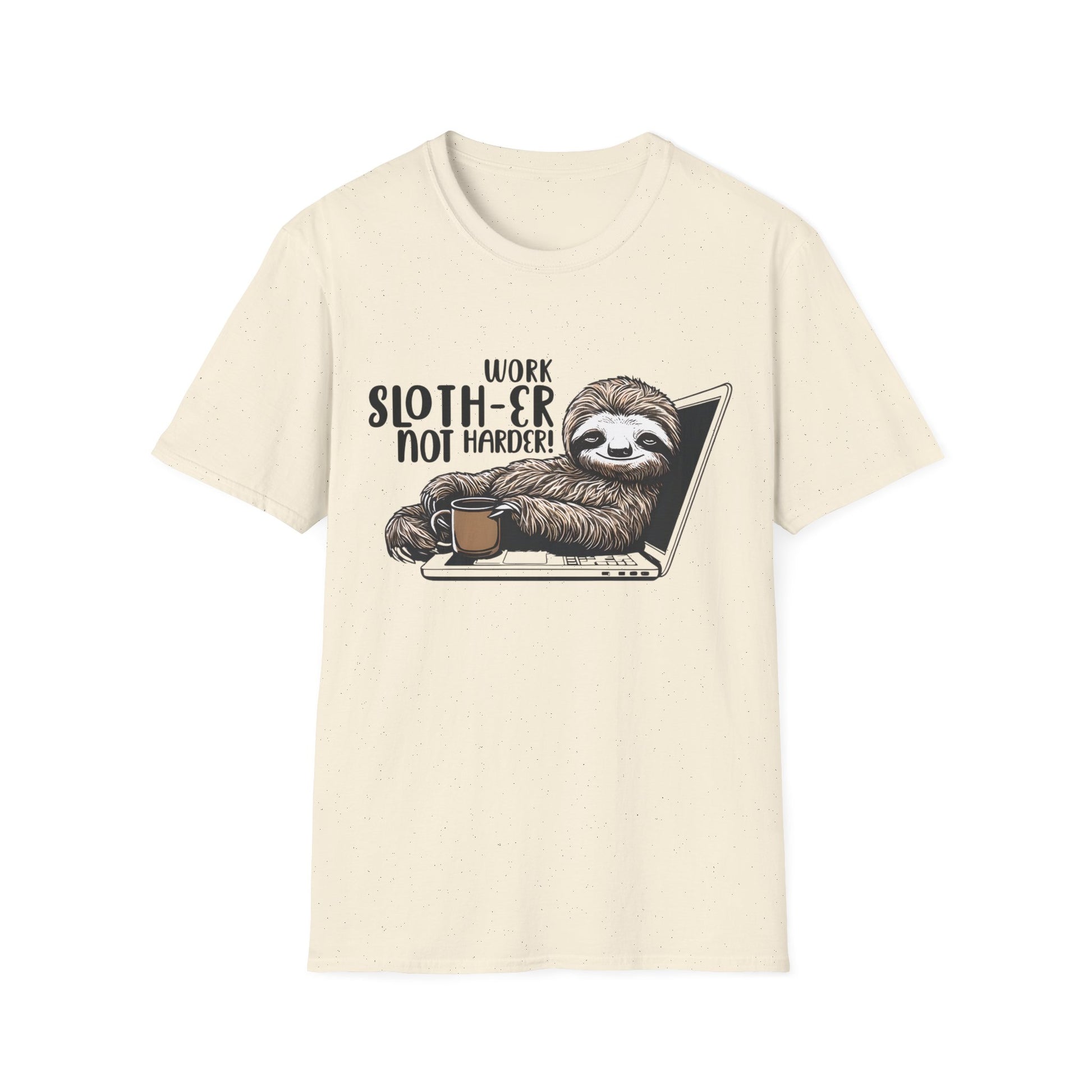 Work Slother Not Harder! - Playful Relaxed Sloth Reclining On Laptop With Coffee Mug T-Shirt
